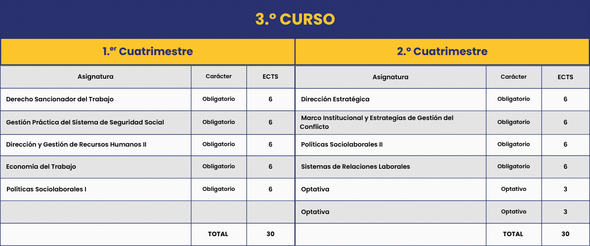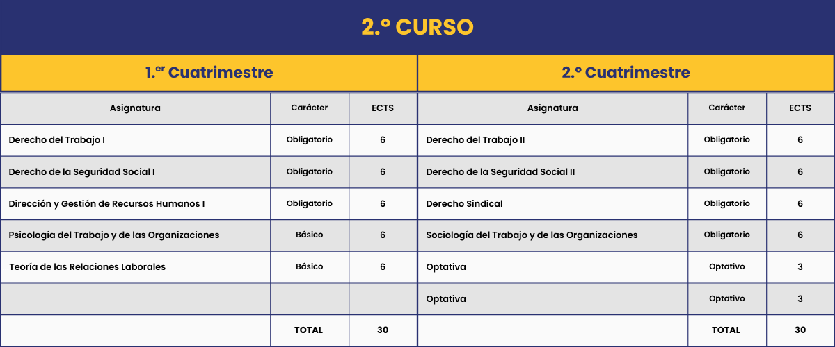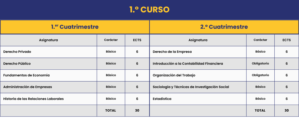 Nuestra oferta académica propone desde su inicio acercarse de una manera transversal e integral a ese complejo mundo del trabajo, al igual que ocurre en la realidad profesional, con enfoques desde el ámbito de la Economía, Derecho, Psicología, Empresa, Historia, Estadística y Sociología.
